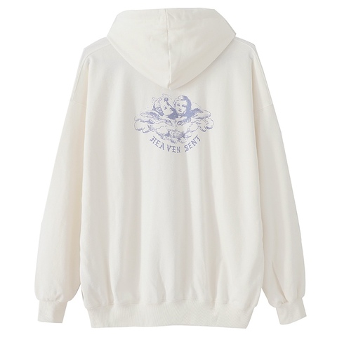 मुस्कान चेहरा पत्र ज़िप ऊन ऊपर का कपड़ा पसीने मुद्रित और नीचे Hooded कोट