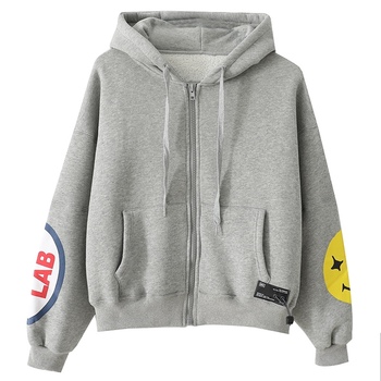 חיוך פנים מכתב Zip צמר הלבשה עליונה סווטשירט מודפס ולמטה סלעית מעיל