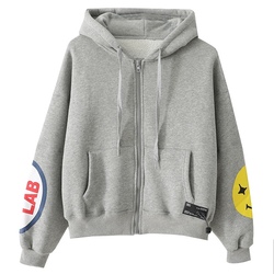Áo Nỉ Nỉ Có Mũ In Chữ Mặt Cười, Áo Khoác Lông Cừu Có Khóa Kéo Hình Mặt Cười